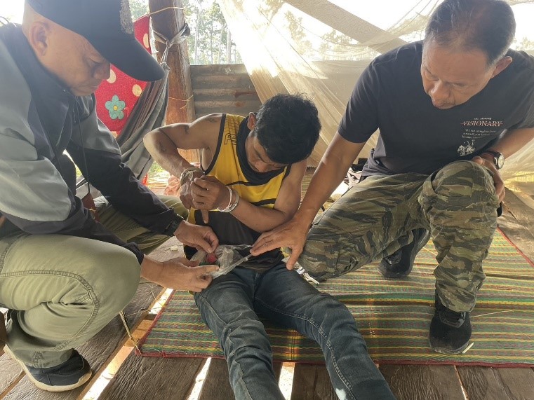 เจ้าหน้าที่ตำรวจชุดจับกุมนำตัวผู้ต้องหาพร้อมของกลางส่งพนักงานสอบสวน สภ.ช่องเม็ก เพื่อดำเนินคดีตามกฎหมายต่อไป