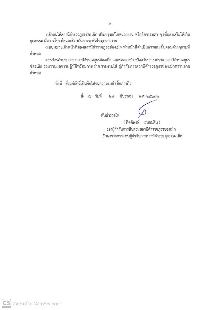 พ.ต.อ.ญาณกร  ตรีเทพา ผกก.สภ.ช่องเม็ก กำกับ ติดตามการเผยแพร่ข้อมูลสาธารณะอย่างต่อเนื่องด้วยตนเอง